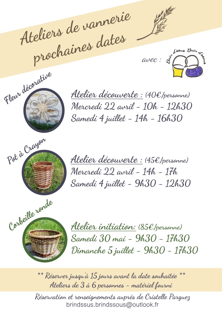 Si vous n’avez jamais fait de vannerie ou si vous n’êtes pas encore très à l’aise avec la pratique, choisissez plutôt un atelier découverte pour une première approche en vous confortant dans la pratique. Si vous avez déjà tressé de l’osier et que vous connaissez déjà quelques bases en vannerie, l’atelier initiation vous permettra de…