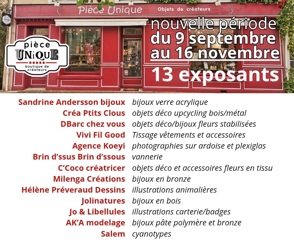 Ouverte du mardi au samedi (10h – 19h), ainsi que le dimanche (14h – 18h), venez découvrir 13 univers différents avec des créations toutes plus belles les unes que les autres !