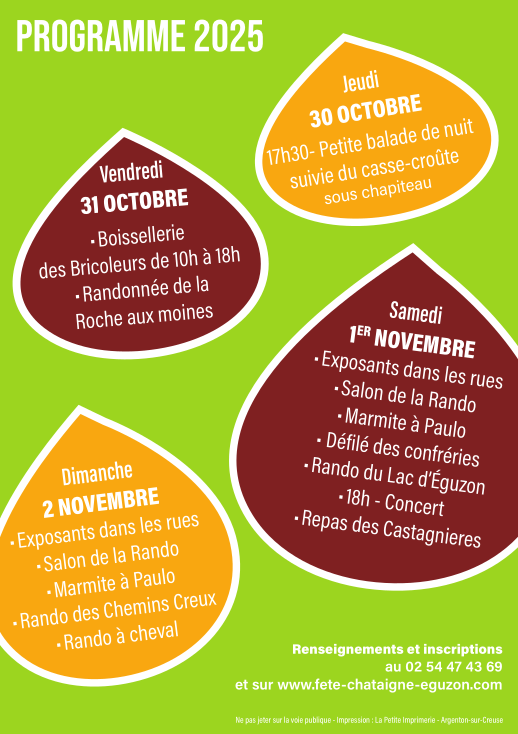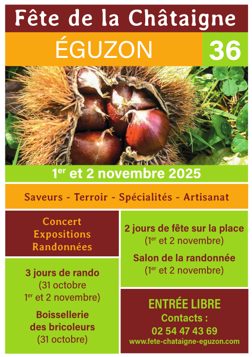Comme tous les ans, retrouvez-moi sur le marché artisanal de la Fête de la Châtaigne à Eguzon les 1er et 2 novembre, de 10h à 18h.