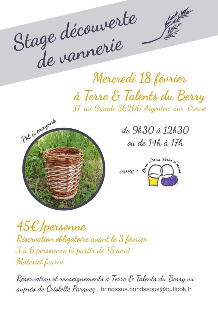 Si vous n’avez jamais fait de vannerie ou si vous n’êtes pas encore très à l’aise avec la pratique, ce stage vous permettra d’aborder les 1er points techniques qui vont vous aider, par la suite, à réaliser vos 1er paniers.