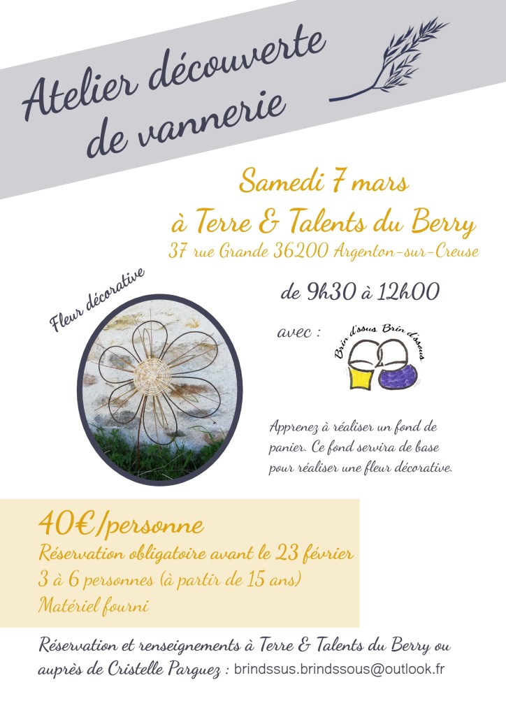 Inscrivez-vous dès maintenant pour l’atelier vannerie qui aura lieu à Argenton sur Creuse le samedi 7 mars, de 9h30 à 12h !